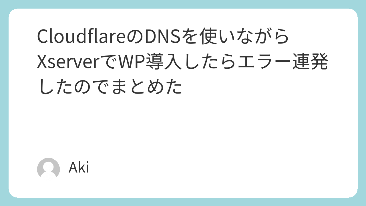CloudflareでDNS管理してる状態で、XserverにWordPressを入れようとしたらエラーが連発して全然進まなかったので、そのときの記録を残しておきます。